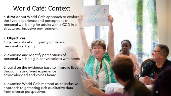 World Cafe Conversations that matter World Cafe event with adults with a CCD – AusDoCC Connections 2023, Melbourne.